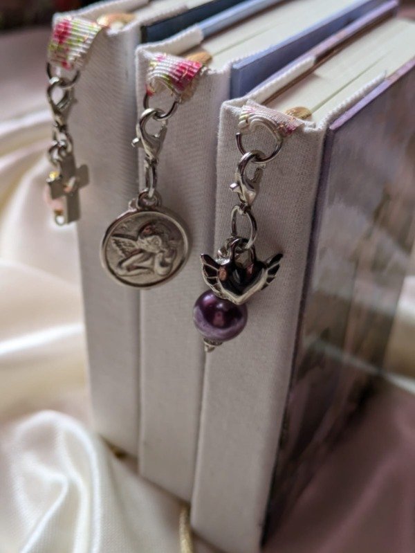 Cuaderno hecho a mano, medidas 8cm x 10cm, con detalles únicos y dijes colgantes. La portada presenta la obra “El nacimiento de Venus” (1879) del pintor académico francés William-Adolphe Bouguereau.