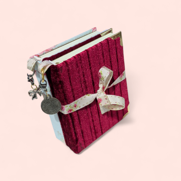 Dúo de cuadernos ideales para regalar o autoregalarse, forrado en terciopelo y estampado floreado, cada uno cuánta con su mini charm propio! Hojas lisas de 80g y cosidos a mano💕✨