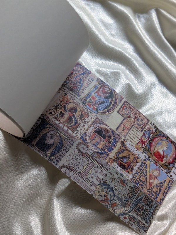 Abecedario iluminado en papel stikers recortable, cuenta con una lámina con iniciales historiadas de la A a la Z y 2 láminas con iniciales variadas.